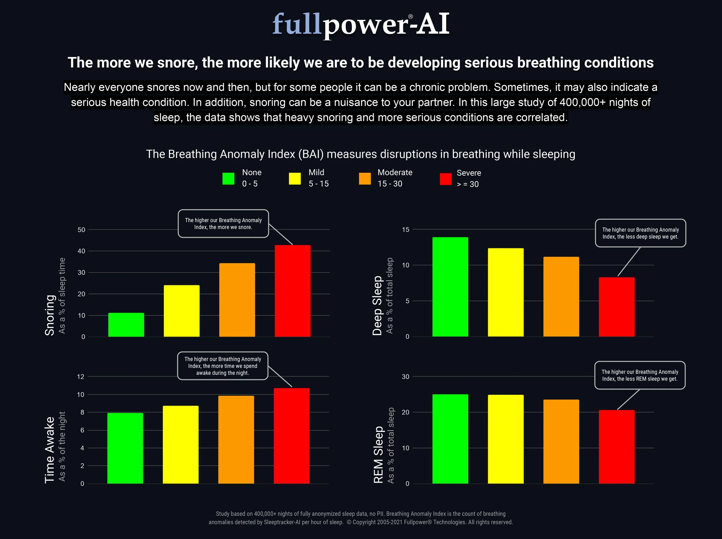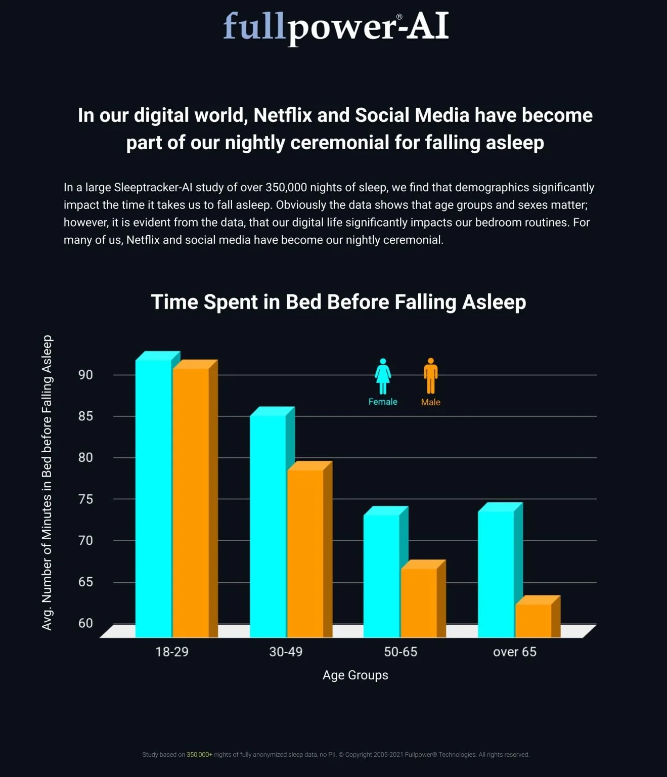 Fullpower® Sleep by Sleeptracker-AI® collects data effortlessly each night without wearables, charging, or disruption, capturing: