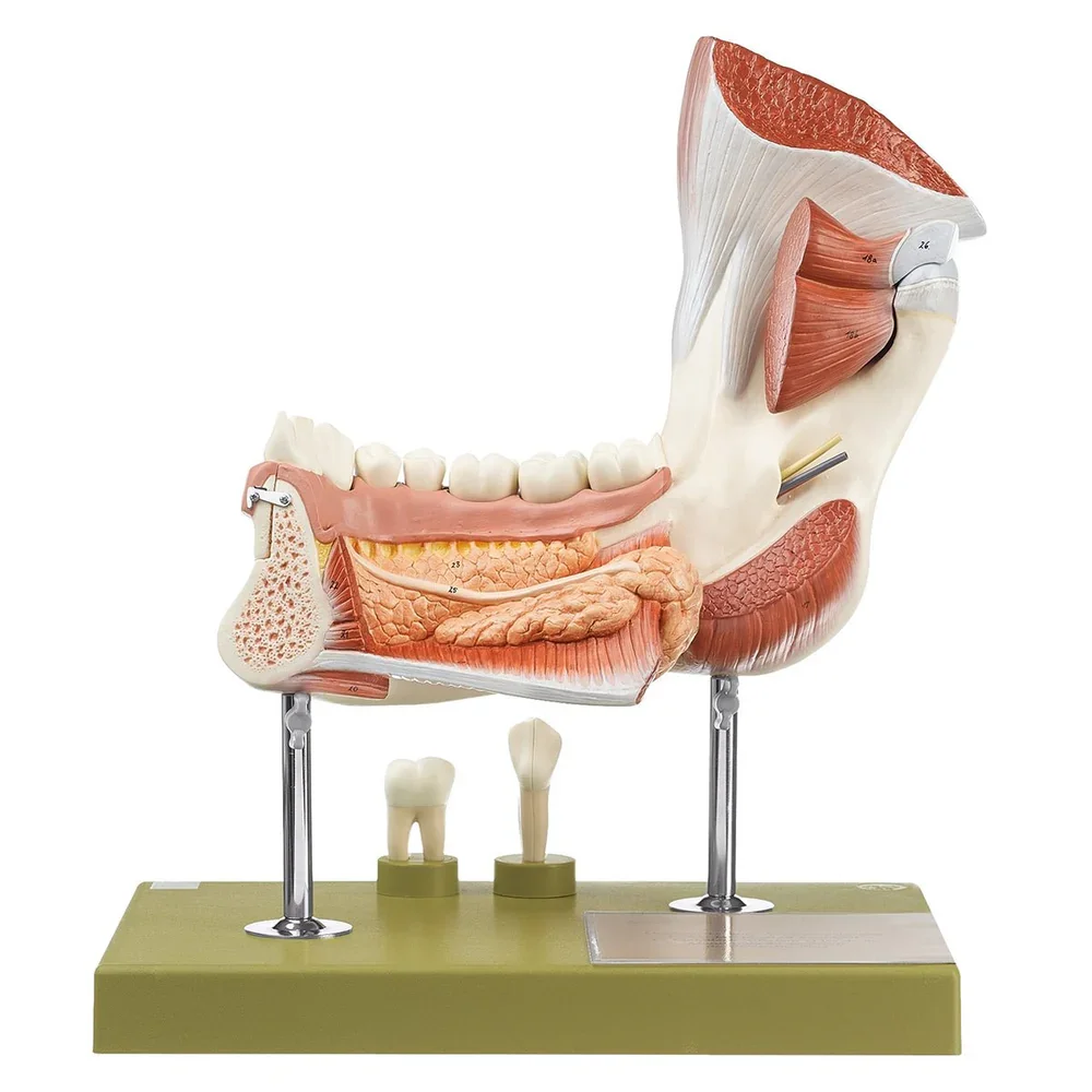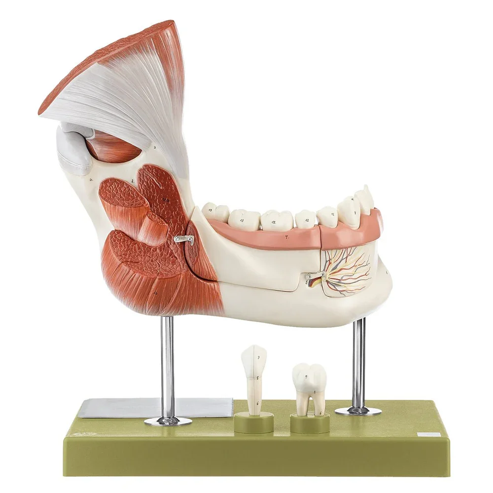 As shown in this anatomical model of the inside of the right lower jaw, we target the muscles responsible for clenching and airway restriction.